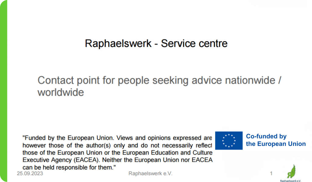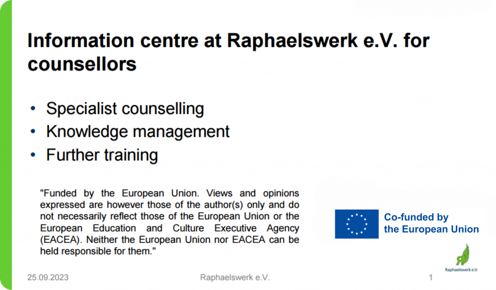 AGEyR and the Raphaelswerk are two of the main exponents of said counselling work within the context of the European Union.
